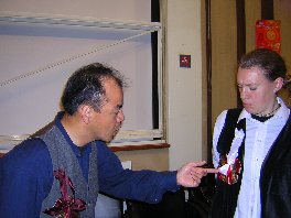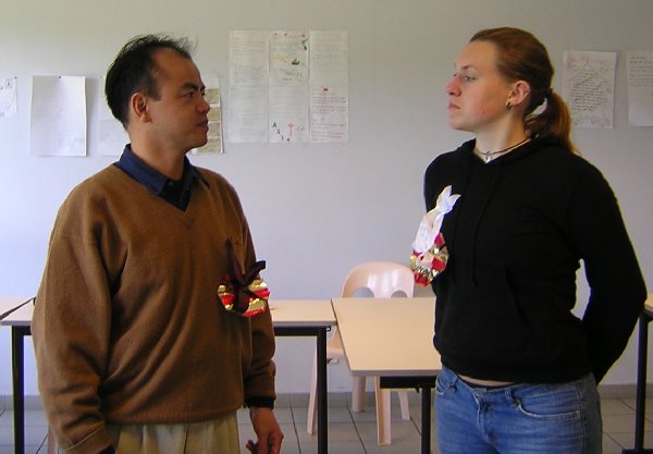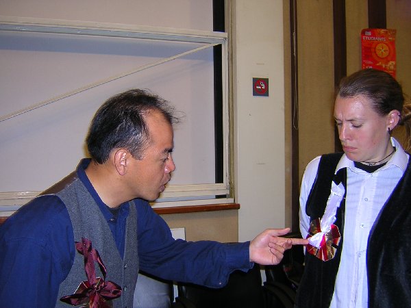 <-- Moi aussi, j'ai une boutonnière ! --> ... Avec des petits rubans, oui oui oui... |